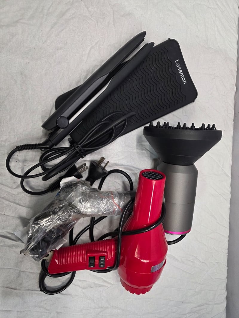 Hair accessories including 2x blowdryers and 1x straightener Sold as lot