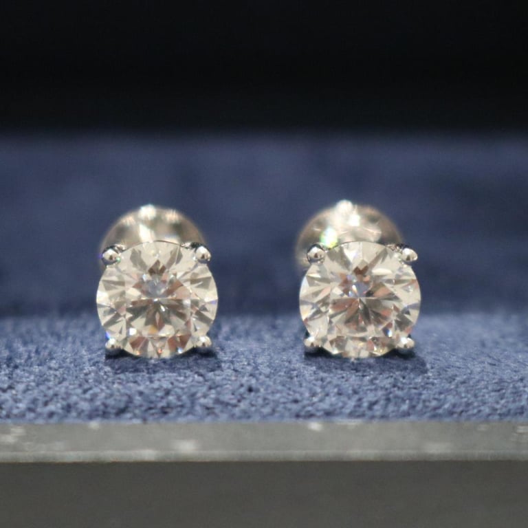 Crafted In 18K White Gold, This Studs Features A Pair Of Stunning Igi Certified 1.5 Ct D Vvs2 Round Cut Lab Grown Diamond In A Four Prong Setting With Screw Back.