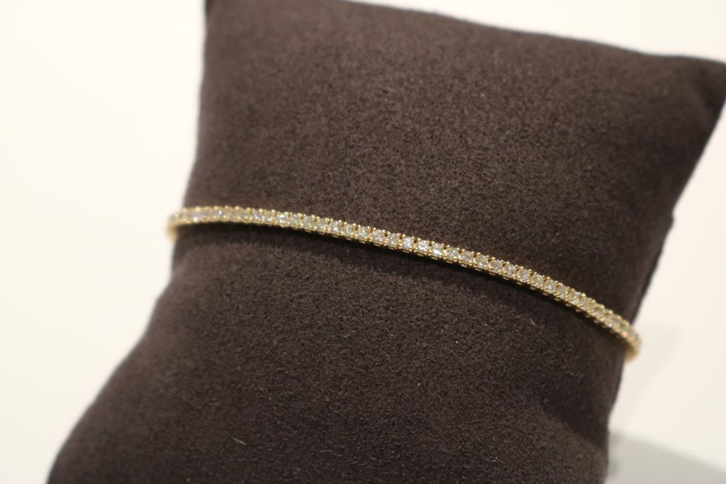18K YELLOW GOLD TENNIS BRACELET WITH 1.93 CT LAB-GROWN DIAMONDS Total Item Weight: 7.05gms Size: 17.8cms Diamond Color: E-F Diamond Clarity: Vvs-Vs A Luxurious 1.93 Ct Tennis Bracelet With A Box Clasp And Double Safety Latch. Adorned With 93 Meticulously Set Round Lab-Grown Diamonds Set In 18K Yellow Gold. With A Gross Weight Of 7.05 Grams, This Bracelet Exudes Elegance And Brilliance.Diamond Quality: Vvs-Vs, Color EfDiamond Size: 1.7MmLength: 7 Inch (17.78 Cms)Perfect For Adding A Touch Of Glamour To Any Outfit. Condition: Good - Refer Images 0488290+17