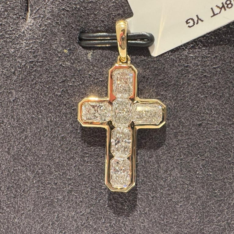 Crafted In 18K Yellow Gold, This Beautiful Cross Pendant Features 6 Radiant Cut Lab Grown Diamonds