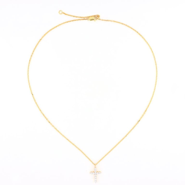 18K YELLOW GOLD 0.38 CT LAB GROWN DIAMOND NECKLACE Total Item Weight: 4.05gms Size: 40-46cms Diamond Color: D-E Diamond Clarity:Vvs-Vs Crafted In 18K Yellow Gold, This Necklace Features A Beautiful Cross Pendant Made Of 11 Round Cut Lab Grown DiamondsColor Clarity: D-E Vvs-VsTotal Diamond Weight: 0.38 Ct Gross Weight: 4.05 Gms. ApproxNeckalce Size Is Adjustable To 18 Inch And 16 Inch Markings: 750 Condition: Good - Refer Images 0488290+3