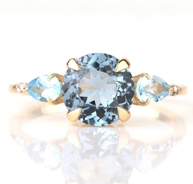 9CT YELLOW GOLD NATURAL LONDON BLUE TOPAZ / NATURAL SWISS BLUE TOPAZ & DIAMOND RING Weight Of The Item: 1.9 GFineness Of Metal(S): Yellow Gold 9KtThe Ring Consists Of (1) Round Brilliant Natural London Blue Topaz & (2) Pear Brilliant Cut Swiss Blue Topaz. Surrounding The Main Stones Are Round Brilliant Cut Natural Diamonds.Antique StyleIdentification: Natural London Blue Topaz / Natural Swiss Blue TopazColor: Blue / BlueShape: Round Brilliant Cut / Pear Faceted CutNo. Of Stone: 3Dimension: 8 Mm X 8 Mm X 4.8 MmWeight: 2.95 Carats / 0 CaratsCut: Very GoodIdentification: Natural DiamondShape: Round Brilliant CutWeight: 0.02 CtsCut: Excellent. Certificates Are Provided By Gemological Science International (Gsi), An Independent Third-Party Gemological Laboratory Based In The Usa And Recognised Among The Top 10 Gem Labs Globally Condition: Good - Refer Images 0488266+57