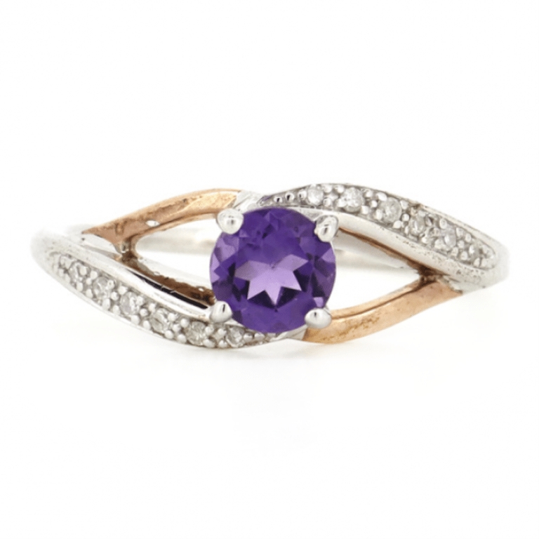 STERLING SILVER/9K ROSE GOLD, AMETHYST AND DIAMOND, INFINITY RING.