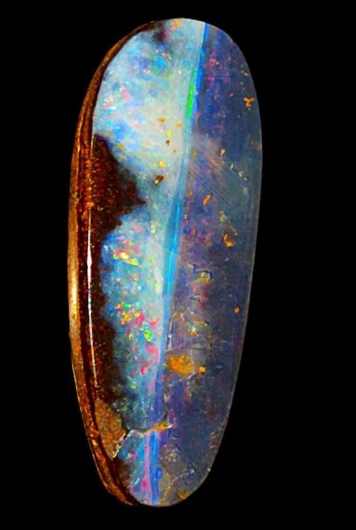 51.2 CARATS WINTON BOULDER OPAL. Pretty Arty Stone With Reds And Blues. 34X14X10 Condition: Good - Refer Images 0586113+61