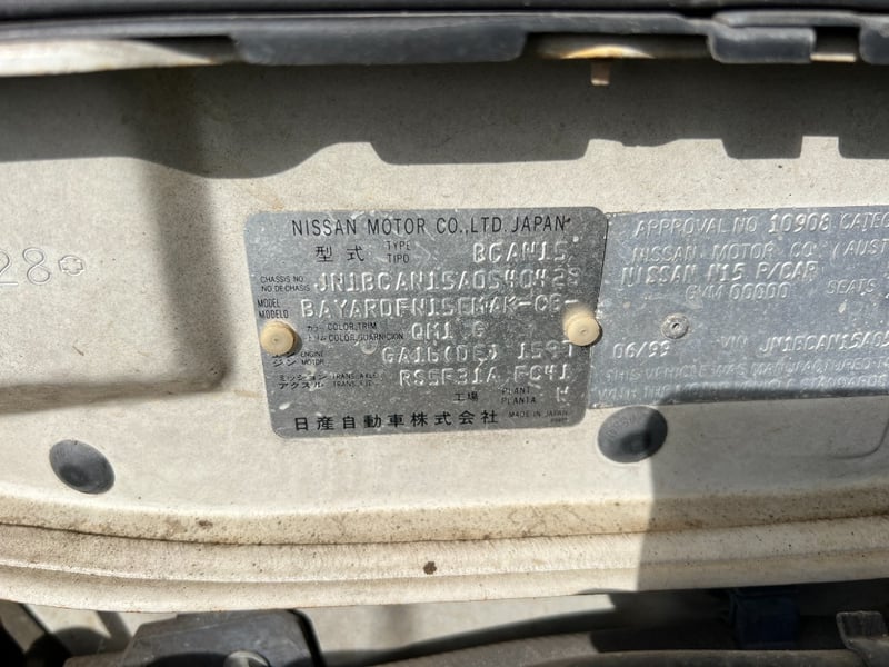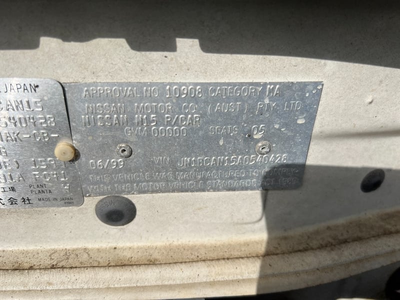 1999 Nissan Pulsar White VIN - JN1BCAN15A0540428 ENGINE NUMBER - GA16105931C AS PER PPSR Contact: Kyle Haywood - 0487 020 888 or [email protected] All vehicles in this sale are sold with no keys (unless stated otherwise), as is, where is, with no warranty. Any contents as shown in photos may remain with the asset. No mechanical checks or assumptions have been made, therefore we recommend careful consideration prior to bidding. Online Viewing Only Collections must occur from Monday the 17th November until Thursday 20th November between 8am to 3pm, once full cleared funds have been received. This Vehicle is unwarranted Potential of unknown dangerous items (e.g., broken glass, syringes, etc). Persons who enter the vehicle do so at their own risk due to potential presence of unknown items.