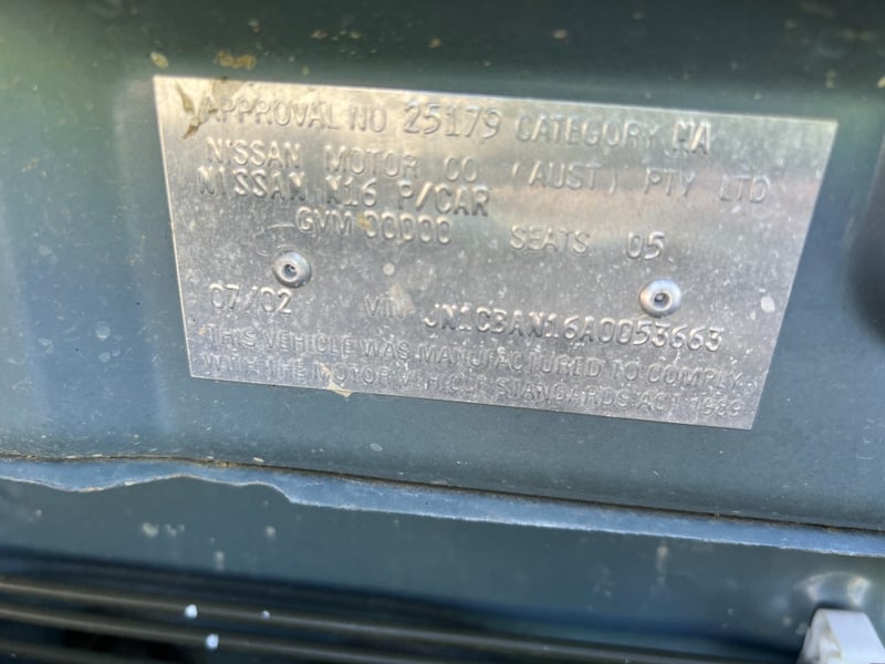 ENGINE NUMBER - QG18256360 AS PER PPSR