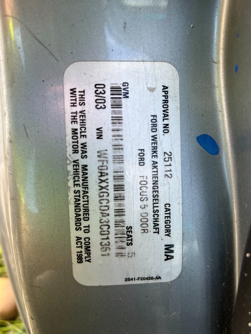 2003 Ford Focus Silver VIN - WF0AXXGCDA3C01361 ENGINE NUMBER - 3C01361 AS PER PPSR Contact: Kyle Haywood - 0487 020 888 or [email protected] All vehicles in this sale are sold with no keys (unless stated otherwise), as is, where is, with no warranty. Any contents as shown in photos may remain with the asset. No mechanical checks or assumptions have been made, therefore we recommend careful consideration prior to bidding. Online Viewing Only Collections must occur from Monday the 17th November until Thursday 20th November between 8am to 3pm, once full cleared funds have been received. This Vehicle is unwarranted Potential of unknown dangerous items (e.g., broken glass, syringes, etc). Persons who enter the vehicle do so at their own risk due to potential presence of unknown items.