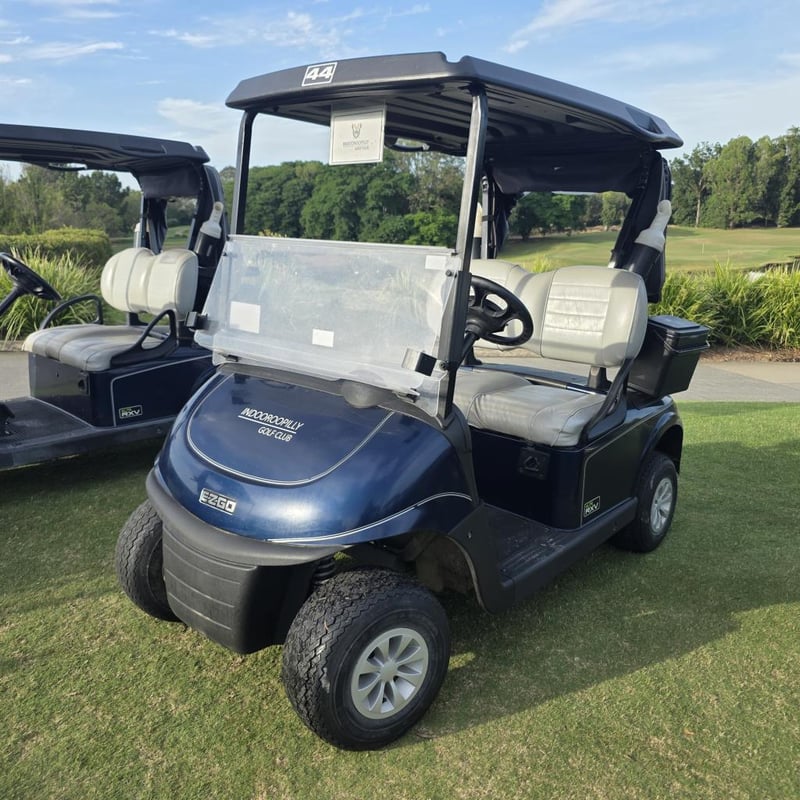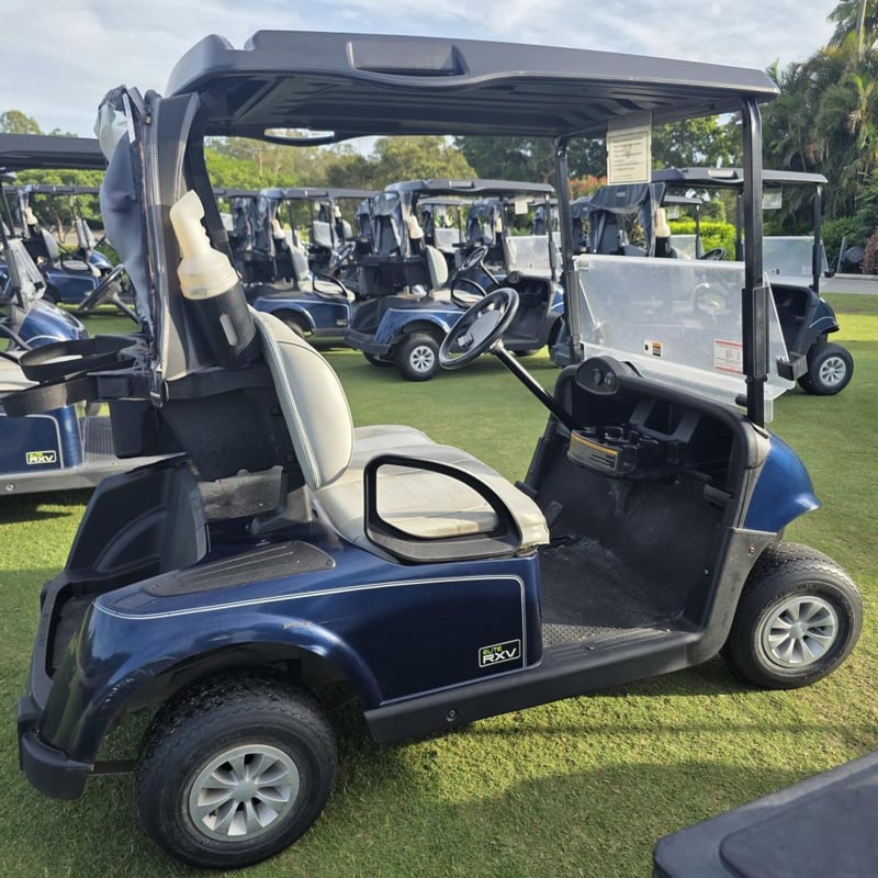2020 4.4HP RXV ELITE EZGO Golf Cart # 44 Year: 2020 Model: EZGO Series: RXV Elite. Battery Type: ELiTE 2.2, 56.7V Lithium Horse Power: 4.4 Notes/Extras: Leather Seats, 2x Golf Bag Carry Section, Built in Cooler/Esky, Quad Drink Holders, Split-Screen Windshield. Note: See Photos for Condition.