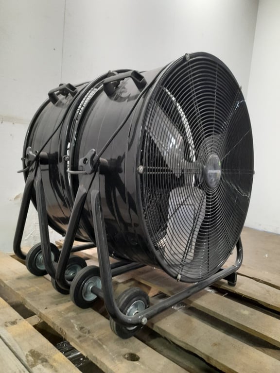 Industrial Barrel Fan, Dynabreeze, Heavy-Duty, Rolling Stand, Black, Qty 2