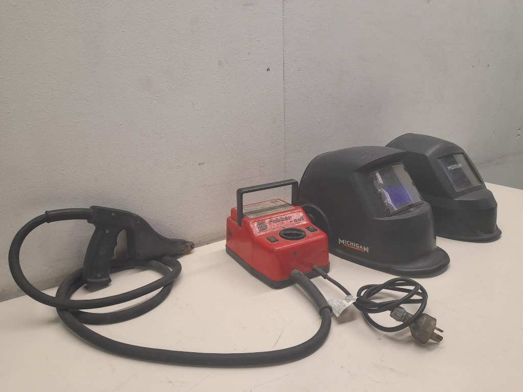 Note: Rubber cutter doesn't start, visors & cutters exhibit scratches and wear