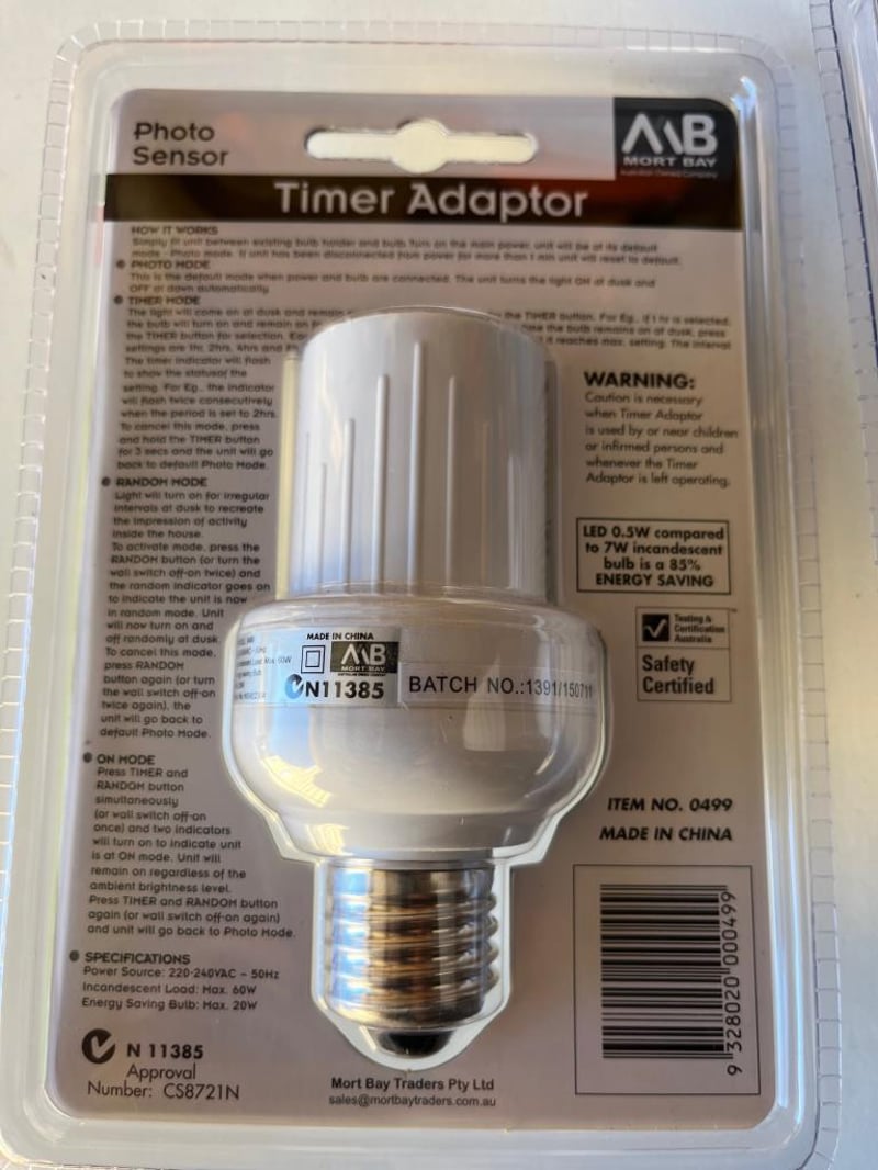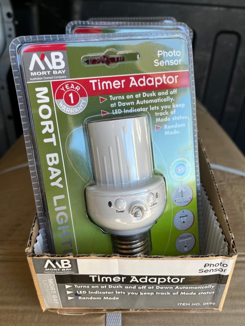 Case of 6 X Dusk till Dawn Socket Timers, Edisson Screw, 3 modes, Normal switch on off, On at Dusk - Off at Dawn timer, plus holiday random mode SOLD AS 1 LOT