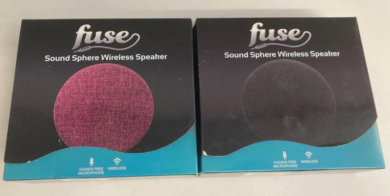 2 X Fuse Bluetooth Wireless Sound Sphere Speaker, Wireless Mic, 300mAh Lithium Battery, Flat or Stand modes, Volume and Track Control, AUX Jack, Brand New SOLD AS 1 LOT