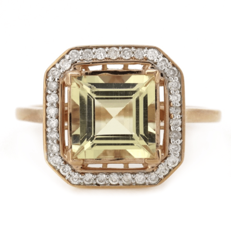 14K ROSE GOLD, HELIODOR AND DIAMOND, HALO RING.