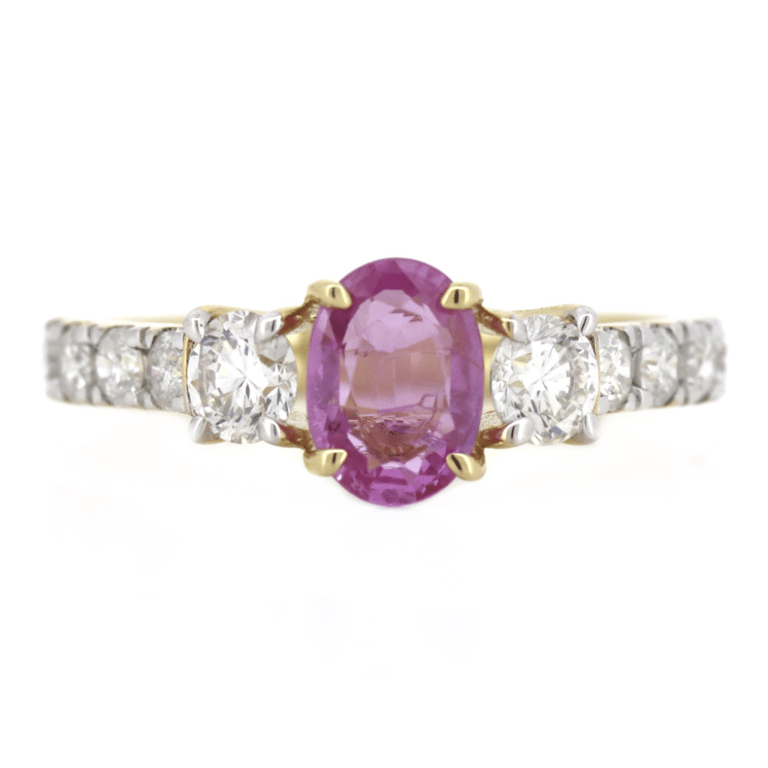 14K YELLOW GOLD, PINK SAPPHIRE AND DIAMOND, DRESS RING. The Centre Features, One Oval Cut, Medium Pink, Sapphire (0.90Ct, Natural Inclusions), Claw Set. Decorating The Shoulders Are, 2 Round Brilliant Cut, Diamonds (0.43Ct Tdw, H-I Colour, Si Clarity),4 Claw Set. Embellishing The Band Are, 10 Round Brilliant Cut, Diamonds (0.51Ct Tdw, H-J Colour, Si-I2 Clarity), Claw Set. Ring Size M 1/2. Valuations Provided by an Independent Third-Party Professional Not Directly Associated With Lloyds Auctions at AUD $$15,000.00This valuation has been conducted by an independent third-party professional. The valuation amount is an assessment by the issuing valuer and does not reflect the auction value of the item. Any inquiries regarding the valuation should be directed to the issuing valuer (refer to contact details on the certificate), as Lloyds Auctions has no affiliation or influence over the valuation, the valuer, or the stated amount. Condition: Good - Refer Images 0645841+315
