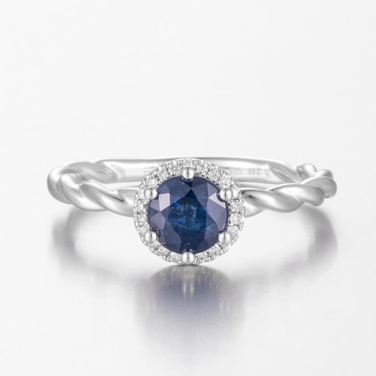 14CT WHITE GOLD AUSTRALIAN SAPPHIRE AND DIAMOND HALO RING. Featuring Centre, One Round Cut, Deep Moderate Blue, Australian Sapphire (1.25Ct, Slightly Included), Claw Set, With 22 Round Brilliant Cut Diamonds (0.07Ct Tdw, G-H Colour, Vs1-Vs2 Clarity), Bead Set. Ring Size O. Valuations Provided by an Independent Third-Party Professional Not Directly Associated With Lloyds Auctions at AUD $14400This valuation has been conducted by an independent third-party professional. The valuation amount is an assessment by the issuing valuer and does not reflect the auction value of the item. Any inquiries regarding the valuation should be directed to the issuing valuer (refer to contact details on the certificate), as Lloyds Auctions has no affiliation or influence over the valuation, the valuer, or the stated amount. Condition: Good - Refer Images 0586115+1288