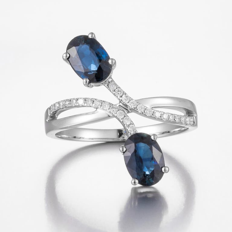 14CT WHITE GOLD AUSTRALIAN SAPPHIRE AND DIAMOND DRESS RING . Featuring Centre, 2 Oval Cut, Moderate Deep Royal Blue Australian Sapphires (1.80Ct Tsw Slightly Included), Claw Set, With 26 Round Brilliant Cut Diamonds (0.12Ct Tdw, G-H Colour, Vs1-Vs2 Clarity), Bead Set. Ring Size O. Valuations Provided by an Independent Third-Party Professional Not Directly Associated With Lloyds Auctions at AUD $14000This valuation has been conducted by an independent third-party professional. The valuation amount is an assessment by the issuing valuer and does not reflect the auction value of the item. Any inquiries regarding the valuation should be directed to the issuing valuer (refer to contact details on the certificate), as Lloyds Auctions has no affiliation or influence over the valuation, the valuer, or the stated amount. Condition: Good - Refer Images 0586115+1289
