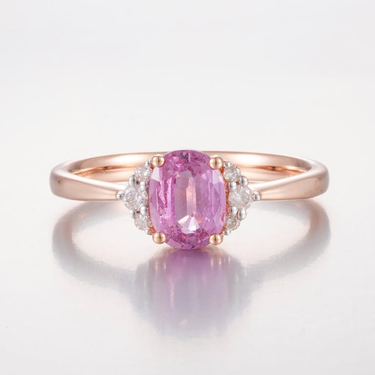 14CT ROSE GOLD PINK CEYLON SAPPHIRE AND DIAMOND DRESS RING. Featuring Centre, One Oval Cut, Moderate Pink Ceylon Sapphire (1.18Ct, Moderately Included), Claw Set, With 6 Round Brilliant Cut Diamonds (0.10Ct Tdw, G-H Colour, Vs1-Vs2 Clarity), Bead Set In White Gold. Ring Size O. Valuations Provided by an Independent Third-Party Professional Not Directly Associated With Lloyds Auctions at AUD $16000This valuation has been conducted by an independent third-party professional. The valuation amount is an assessment by the issuing valuer and does not reflect the auction value of the item. Any inquiries regarding the valuation should be directed to the issuing valuer (refer to contact details on the certificate), as Lloyds Auctions has no affiliation or influence over the valuation, the valuer, or the stated amount. Condition: Good - Refer Images 0586115+1273