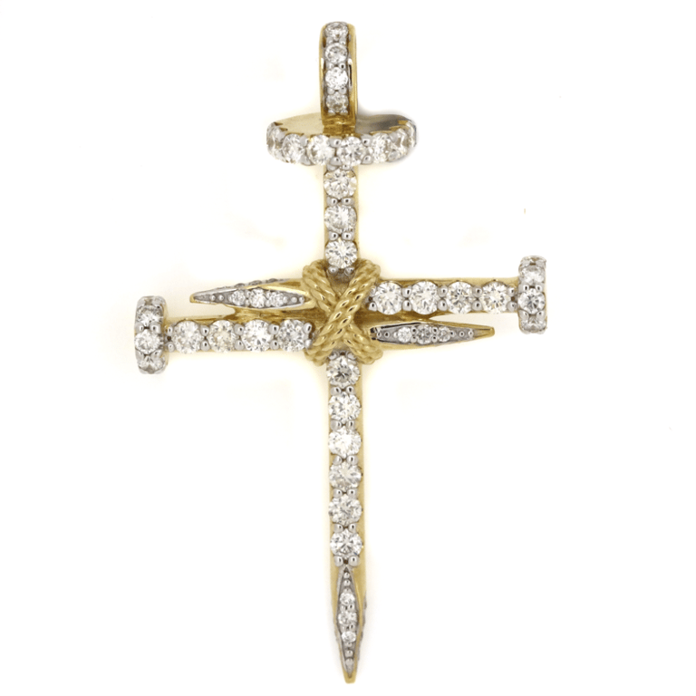 14K YELLOW GOLD, 1.42CT TDW DIAMOND, CRUCIFIX PENDANT.