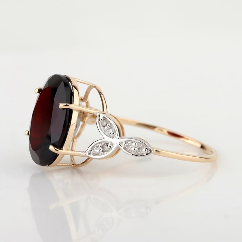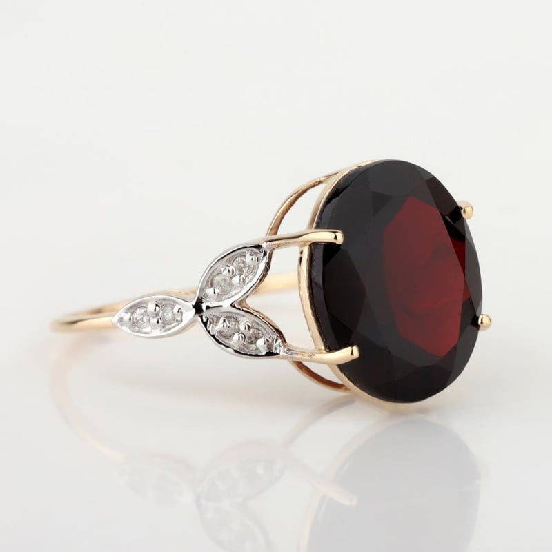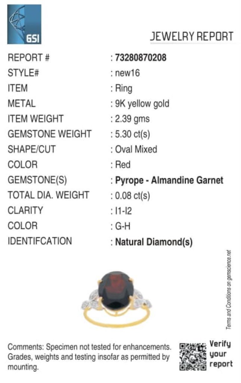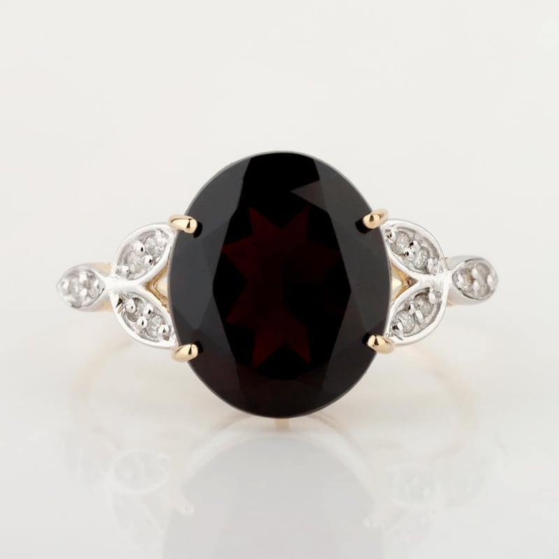 9CT YELLOW GOLD NATURAL GARNET & DIAMOND RING