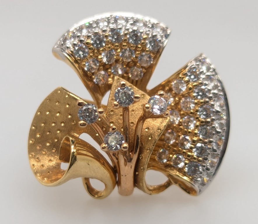 Ring Features Floral Design With White Glass Stones