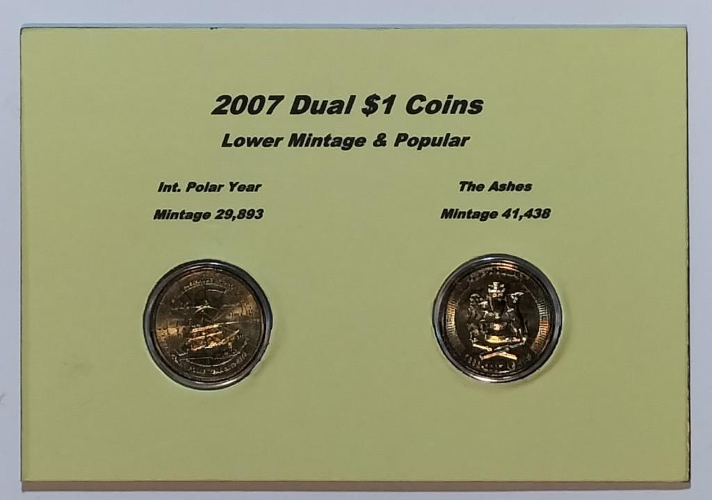 2007 DUAL $1 COINS LOWER MINTAGE & POPULAR $1 INT. POLAR YEAR & THE ASHES Condition: UNCEx Mint Roll; Pnc23528+9