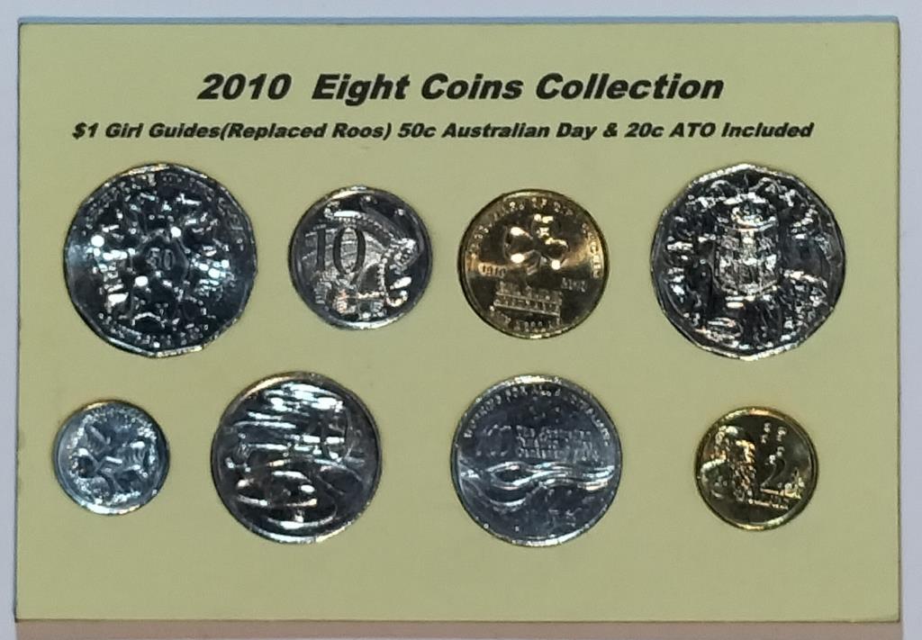 2010 EIGHT COINS COLLECTION $1 GIRL GUIDES(REPLACED ROOS) 50C AUSTRALIAN DAY & 20C ATO INCLUDED