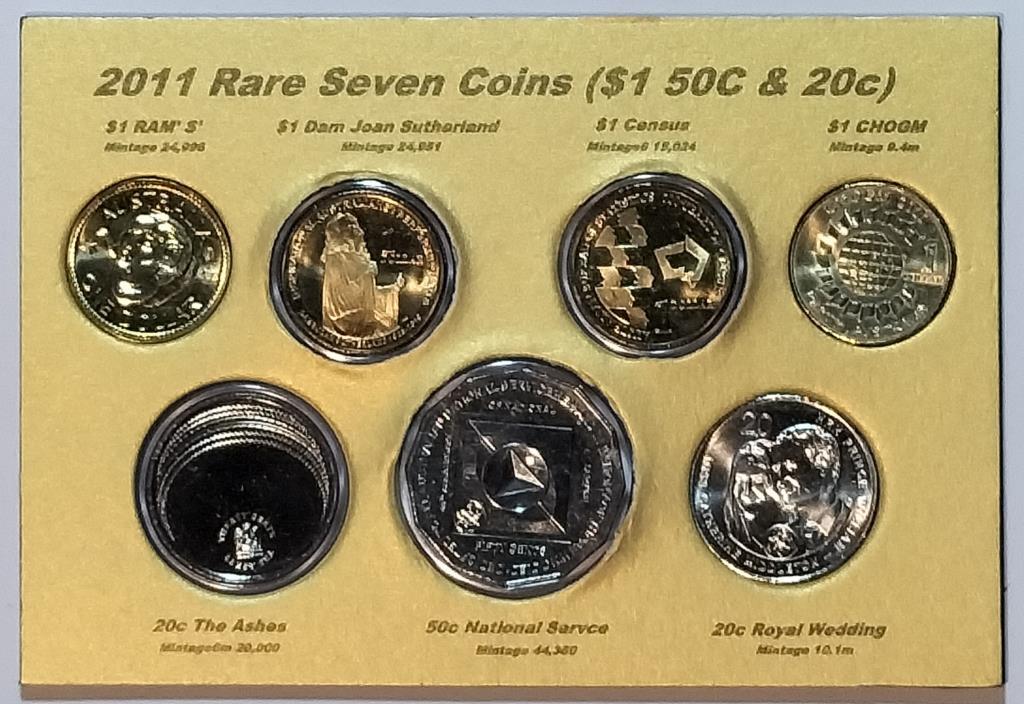 2011 SEVEN COINS ($1 50C & 20C) $1 DAM JOAN SUTHERLAND; CENSUS; RAM'S' & CHOGM; 50C NATIONAL SERVICE;