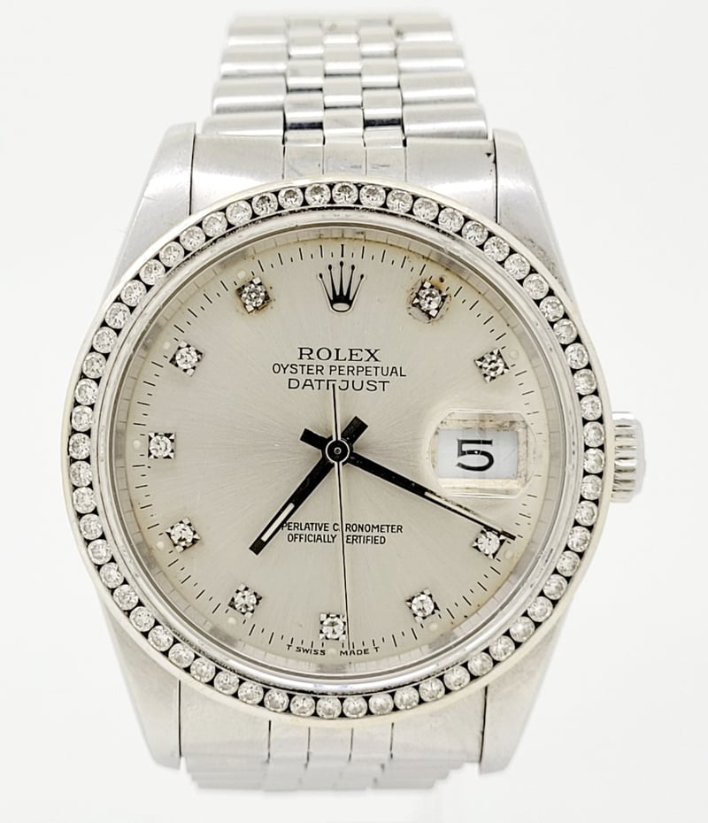 ROLEX DATEJUST STEEL WHITE GOLD DIAMOND DIAL 16234 CIRC
