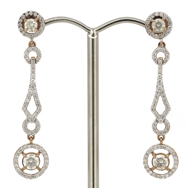 The Design Features, 4 Round Brilliant Cut, Diamonds (0.87Ct Tdw, G-H Colour, Si1-Si2 Clarity), 4 Claw Set. Encompassing The Design Are, 146 Round Brilliant Cut, Diamonds (0.762Ct Tdw, G-H Colour, Si1-Si2 Clarity), Micro-Bead Set. The Earrings Have Post Backs, With 14K Rose Gold Butterfly Clasps.