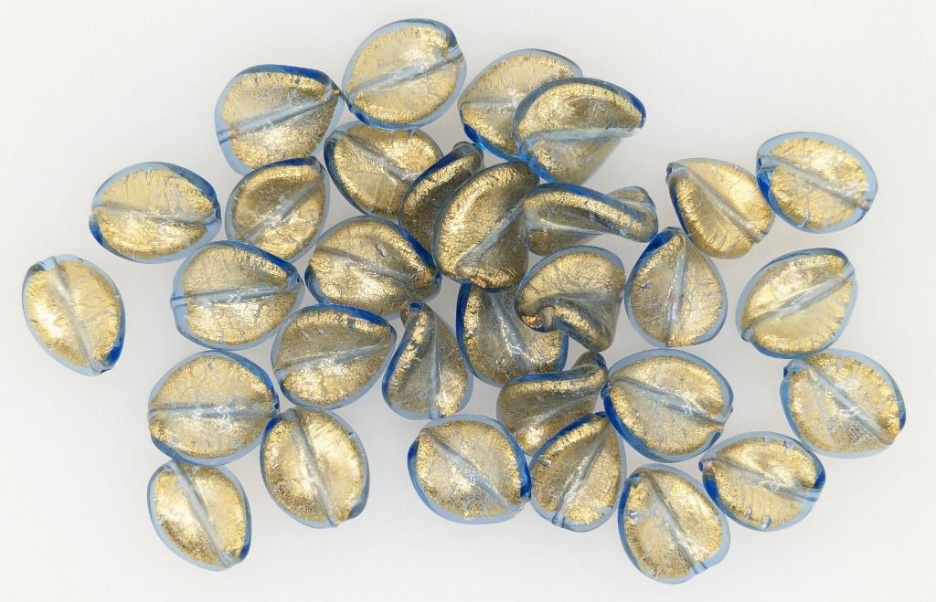 31 X ITALIAN MURANO DRILLED BEADS WITH TWO CLASPSColour: Blue, Shape: Small LeafCondition: Good - Refer To ImagesFC162953+121