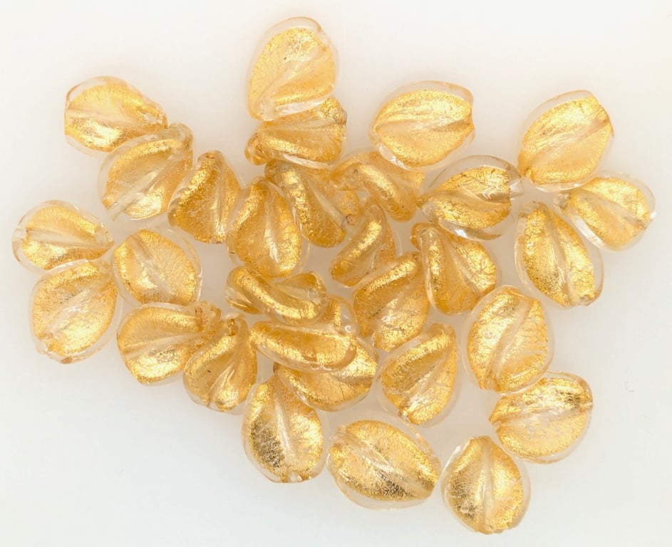 30 X ITALIAN MURANO DRILLED BEADS WITH TWO CLASPSColour: Yellow, Shape: Small LeafCondition: Good - Refer To ImagesFC162953+124