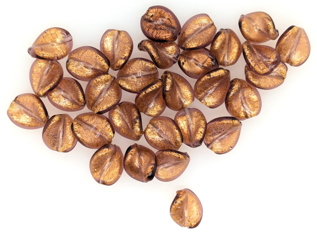 31 X ITALIAN MURANO DRILLED BEADS WITH TWO CLASPSColour: Brown, Shape: Small LeafCondition: Good - Refer To ImagesFC162953+126
