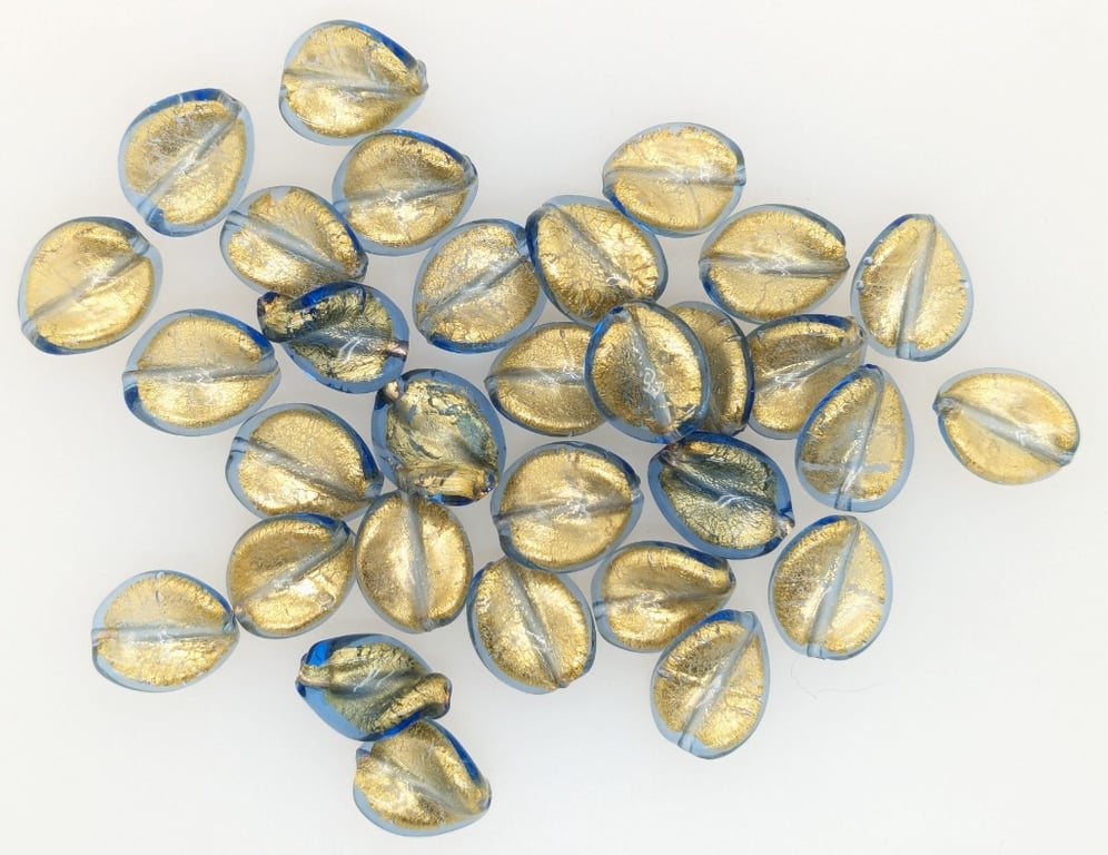 31 X ITALIAN MURANO DRILLED BEADS WITH TWO CLASPSColour: Blue, Shape: Small LeafCondition: Good - Refer To ImagesFC162953+132