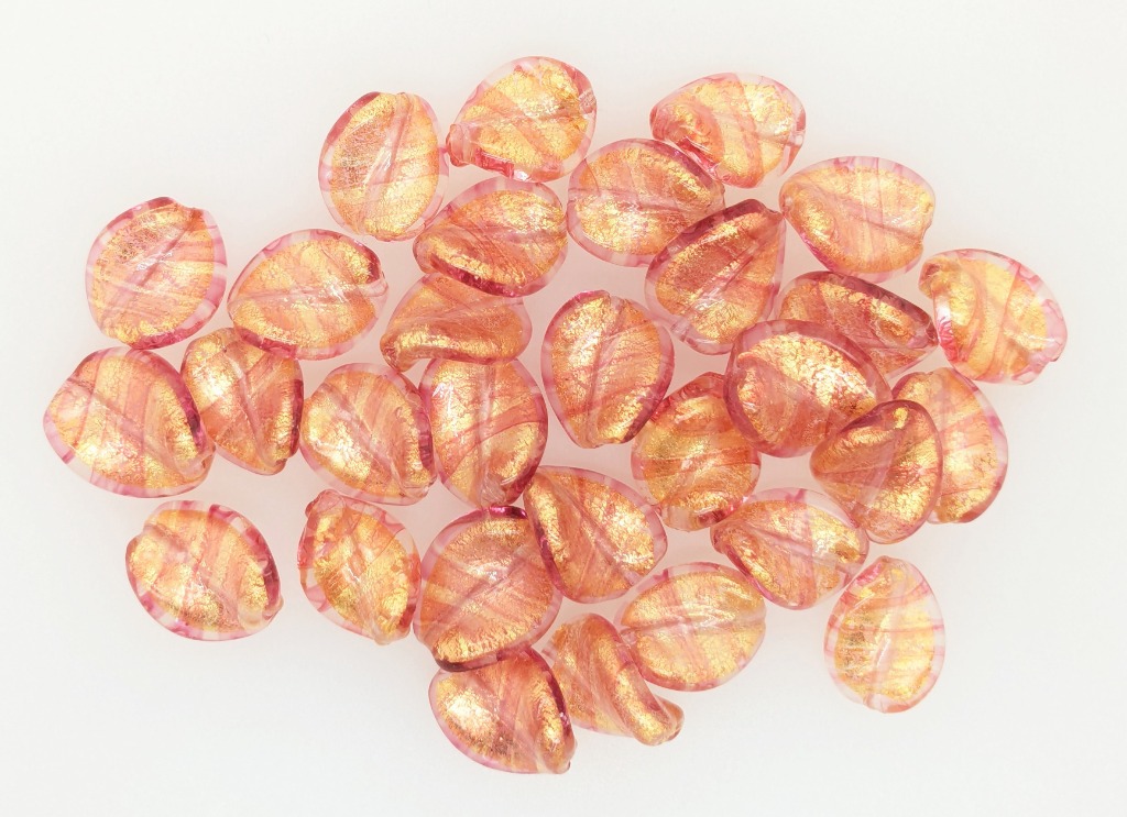 30 X ITALIAN MURANO DRILLED BEADS WITH TWO CLASPSColour: Coral, Shape: Small LeafCondition: Good - Refer To ImagesFC162953+140