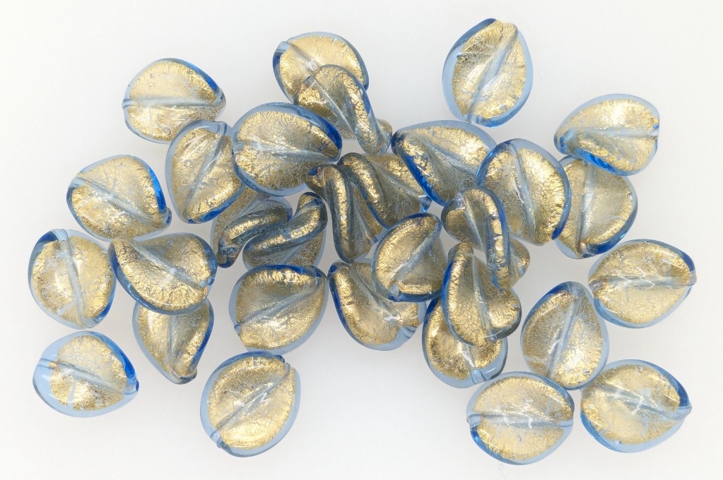 30 X ITALIAN MURANO DRILLED BEADS WITH TWO CLASPSColour: Blue, Shape: Small LeafCondition: Good - Refer To ImagesFC162953+144