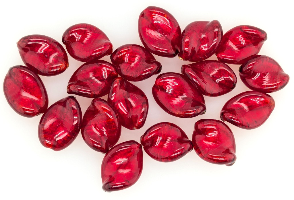 18 X ITALIAN MURANO DRILLED BEADS WITH STERLING SILVER BOLT RINGColour: Red, Shape: Leaf, Size: 20MmCondition: Good - Refer To ImagesFC162953+25