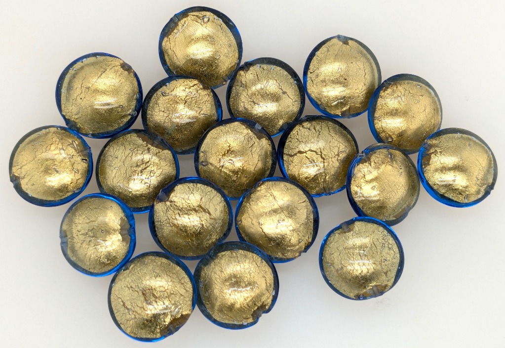 18 X ITALIAN MURANO DRILLED BEADS WITH STERLING SILVER BOLT RINGColour: Blue/Gold, Shape: Disc, Size: 12MmFC162953+34