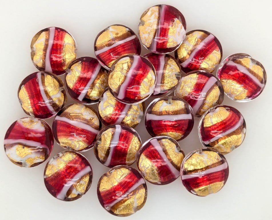 20 X ITALIAN MURANO DRILLED BEADS WITH STERLING SILVER BOLT RING Colour: Swirl, Shape: Disc, Size: 18Mm Condition: Good - Refer To Images FC 162953+62