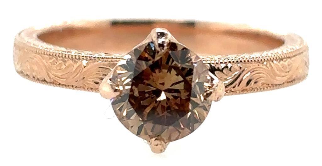 This 18Ct Rose Gold Ring Features 1 X 1.02Ct Diamond Measuring 6.17Mm X 6.26Mm X 4.07Mm, Si2 In Clarity And Fancy Brown In Colour As Per Cgl Report Number S0791808.
