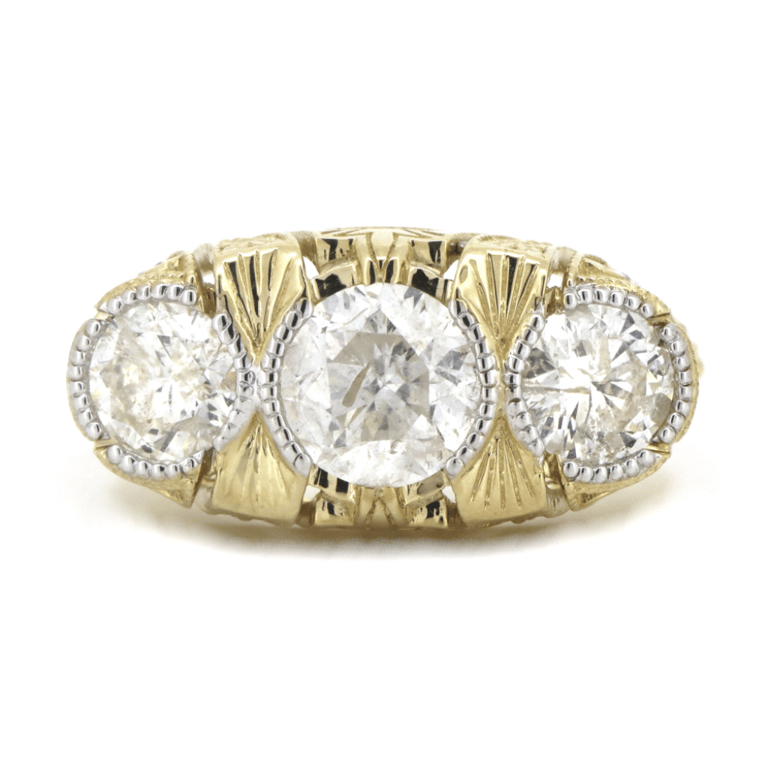 The Centre Features, One Round Brilliant Cut, Diamond (1.53Ct, H-I Colour, I2 Clarity), Bezel Set With Millegrain Detail. Flanked By, 2 Round Brilliant Cut, Diamonds (1.50Ct Tdw, H-J Colour, I1-I2 Clarity), Bezel Set With Millegrain Detail. Decorating The Band Are, 14 Round Brilliant Cut, Diamonds (0.14Ct Tdw, H Colour, Si-I1 Clarity), Bezel Set. Ring Size P 1/2.
