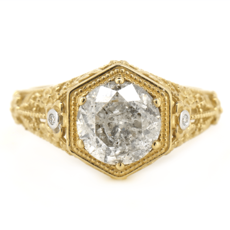 14K YELLOW GOLD AND DIAMOND, ART DECO INSPIRED RING.
