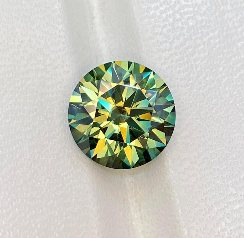 6.18 CARATS SPARKLING MOISSANITE 6.18 Carats Sparkling MoissaniteStone = MoissaniteWeight = 6.18 Carats Colour = GreenCut = RoundLustre = ExcellentNote = Gem Cil, Certified, Condition: Good - Refer Images 0488270+4