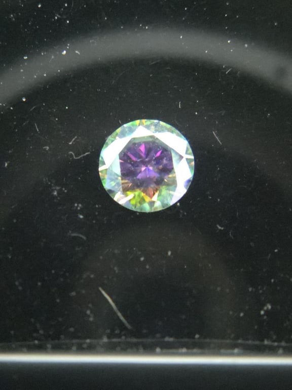 A 0.50Ct Laboratory-Created Moissanite With An Aurora Borealis (Ab) Surface Coating. Features A Colourless Body, Round Brilliant Cut (~5.0 Mm), Vvs Clarity, And No Treatments Aside From The Coating. Report #352753, Issued By Certauth On 19/8/2025, Lists An Estimated Valuation Of Usd $150.00