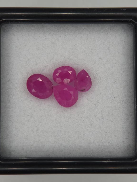 NATURAL RUBY PARCEL – 1.585CT (4 STONES), MIXED CUTS A Parcel Of Four Natural Rubies With A Combined Weight Of 1.585Ct. Stones Display A Vivid Pinkish-Red Colour, Cut In Mixed Oval And Pear Shapes (~5 × 4 Mm Avg.). Translucent Clarity With Visible Inclusions, Showing Evidence Of Common Heat Treatment. Report #352898, Issued By Certauth On 15/8/2025, Lists An Estimated Valuation Of Usd $400.00 Valuations Provided by an Independent Third-Party Professional Not Directly Associated With Lloyds Auctions at AUD $400USDThis valuation has been conducted by an independent third-party professional. The valuation amount is an assessment by the issuing valuer and does not reflect the auction value of the item. Any inquiries regarding the valuation should be directed to the issuing valuer (refer to contact details on the certificate), as Lloyds Auctions has no affiliation or influence over the valuation, the valuer, or the stated amount. Condition: Good - Refer Images 0488264+352898
