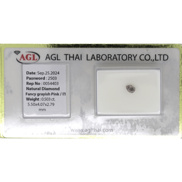 0.503CT CERTIFIED, NATURAL FANCY PINK DIAMOND. Pear Brilliant Cut, Fancy Greyish-Pink, I1 Clarity, Loose, Unset. Stone Comes Sealed With Agl Report: 0054403. Valuations Provided by an Independent Third-Party Professional Not Directly Associated With Lloyds Auctions at AUD $$21,900.00This valuation has been conducted by an independent third-party professional. The valuation amount is an assessment by the issuing valuer and does not reflect the auction value of the item. Any inquiries regarding the valuation should be directed to the issuing valuer (refer to contact details on the certificate), as Lloyds Auctions has no affiliation or influence over the valuation, the valuer, or the stated amount. Condition: Good - Refer Images 0645846+2234