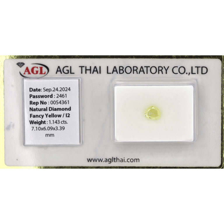 1.143CT CERTIFIED, NATURAL YELLOW DIAMOND. Fancy Brilliant Cut, Fancy Yellow, I2 Clarity, Loose, Unset. Stone Comes Sealed With Agl Report: 0054361. Valuations Provided by an Independent Third-Party Professional Not Directly Associated With Lloyds Auctions at AUD $$12,700.00This valuation has been conducted by an independent third-party professional. The valuation amount is an assessment by the issuing valuer and does not reflect the auction value of the item. Any inquiries regarding the valuation should be directed to the issuing valuer (refer to contact details on the certificate), as Lloyds Auctions has no affiliation or influence over the valuation, the valuer, or the stated amount. Condition: Good - Refer Images 0645846+2230