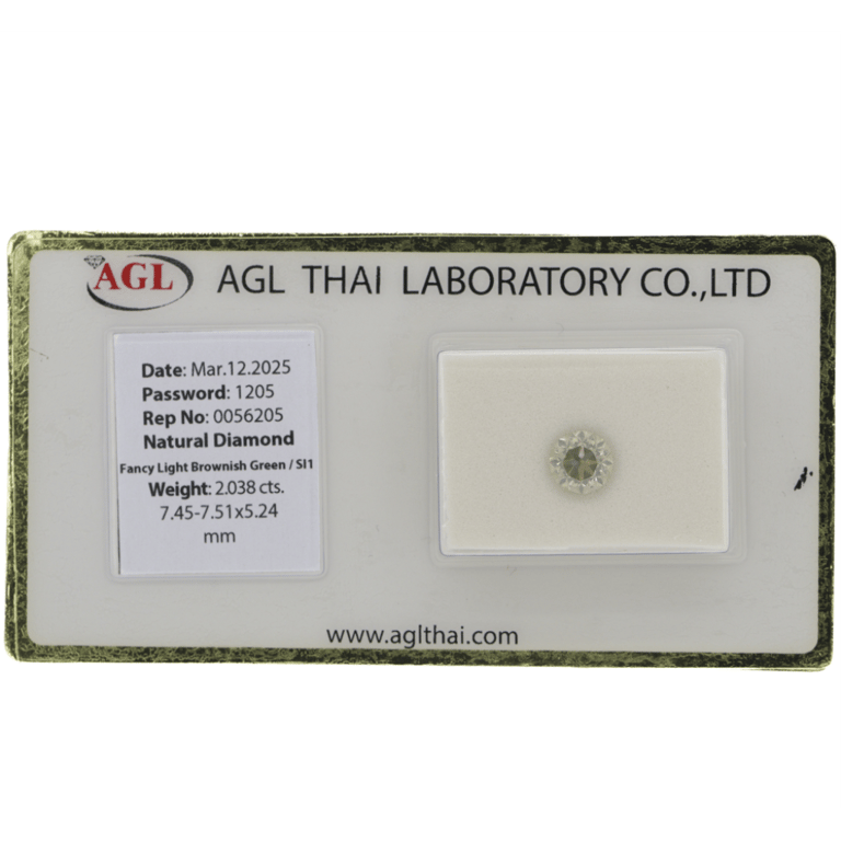 2.038CT CERTIFIED, NATURAL YELLOW/GREEN DIAMOND. Round Brilliant Cut, Fancy Light Yellowish-Green Colour, Si1 Clarity, Loose, Unset. Stone Comes Sealed With Agl Report: 0056205. Valuations Provided by an Independent Third-Party Professional Not Directly Associated With Lloyds Auctions at AUD $$16,000.00This valuation has been conducted by an independent third-party professional. The valuation amount is an assessment by the issuing valuer and does not reflect the auction value of the item. Any inquiries regarding the valuation should be directed to the issuing valuer (refer to contact details on the certificate), as Lloyds Auctions has no affiliation or influence over the valuation, the valuer, or the stated amount. Condition: Good - Refer Images 0645846+2211
