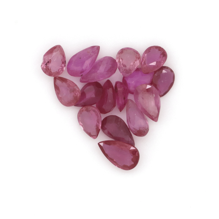 2.88CT TSW X 16, NATURAL RUBIES. Pear Faceted Cut, Medium Deep Pinkish-Red, Moderate Eye Visible Inclusions, Heat Enhanced, Loose, Unset. Valuations Provided by an Independent Third-Party Professional Not Directly Associated With Lloyds Auctions at AUD $$2,250.00This valuation has been conducted by an independent third-party professional. The valuation amount is an assessment by the issuing valuer and does not reflect the auction value of the item. Any inquiries regarding the valuation should be directed to the issuing valuer (refer to contact details on the certificate), as Lloyds Auctions has no affiliation or influence over the valuation, the valuer, or the stated amount. Condition: Good - Refer Images 0645846+2226