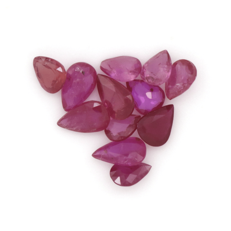 2.09CT TSW X 12, NATURAL CORUNDUM RUBIES. Pear Faceted Cut, Medium-Deep Pinkish-Red, Moderate Eye Visible Inclusions, Heat Enhanced, Loose, Unset. Valuations Provided by an Independent Third-Party Professional Not Directly Associated With Lloyds Auctions at AUD $$1,650.00This valuation has been conducted by an independent third-party professional. The valuation amount is an assessment by the issuing valuer and does not reflect the auction value of the item. Any inquiries regarding the valuation should be directed to the issuing valuer (refer to contact details on the certificate), as Lloyds Auctions has no affiliation or influence over the valuation, the valuer, or the stated amount. Condition: Good - Refer Images 0645846+2271