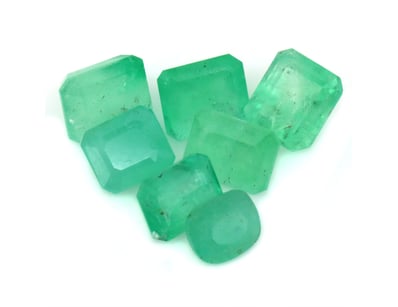 8.39CT TSW X 7, NATURAL COLOMBIAN EMERALDS. Emerald/Cushion Cut, Green, Eye Visible Inclusions, Colombian Origin, Loose, Unset. Valuations Provided by an Independent Third-Party Professional Not Directly Associated With Lloyds Auctions at AUD $$0.00This valuation has been conducted by an independent third-party professional. The valuation amount is an assessment by the issuing valuer and does not reflect the auction value of the item. Any inquiries regarding the valuation should be directed to the issuing valuer (refer to contact details on the certificate), as Lloyds Auctions has no affiliation or influence over the valuation, the valuer, or the stated amount. Condition: Good - Refer Images 0645846+2276